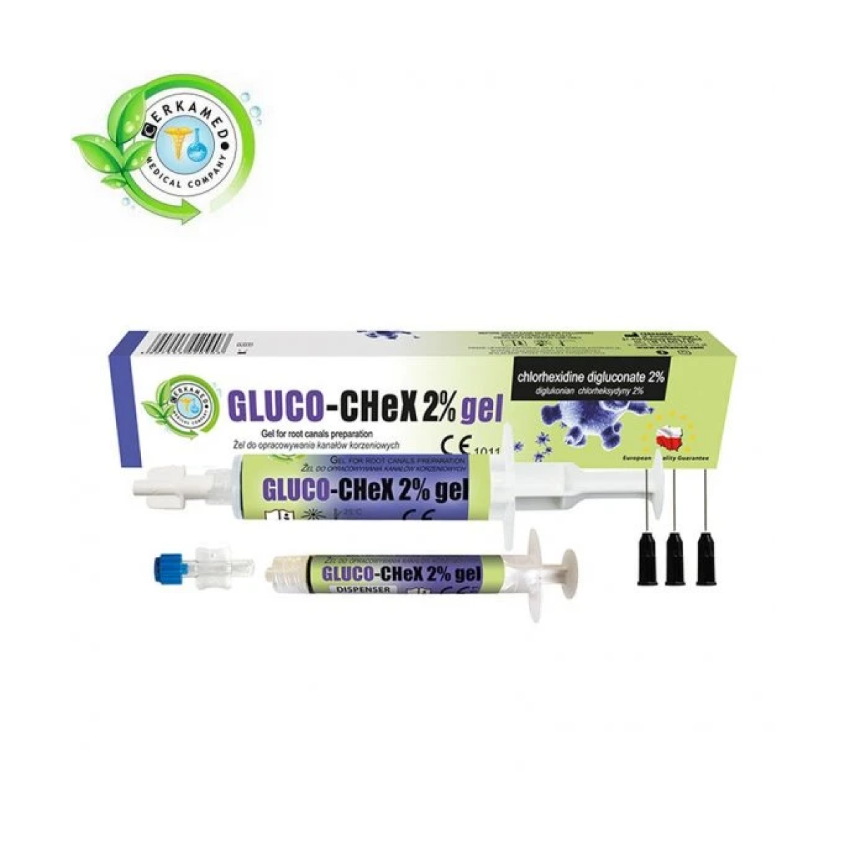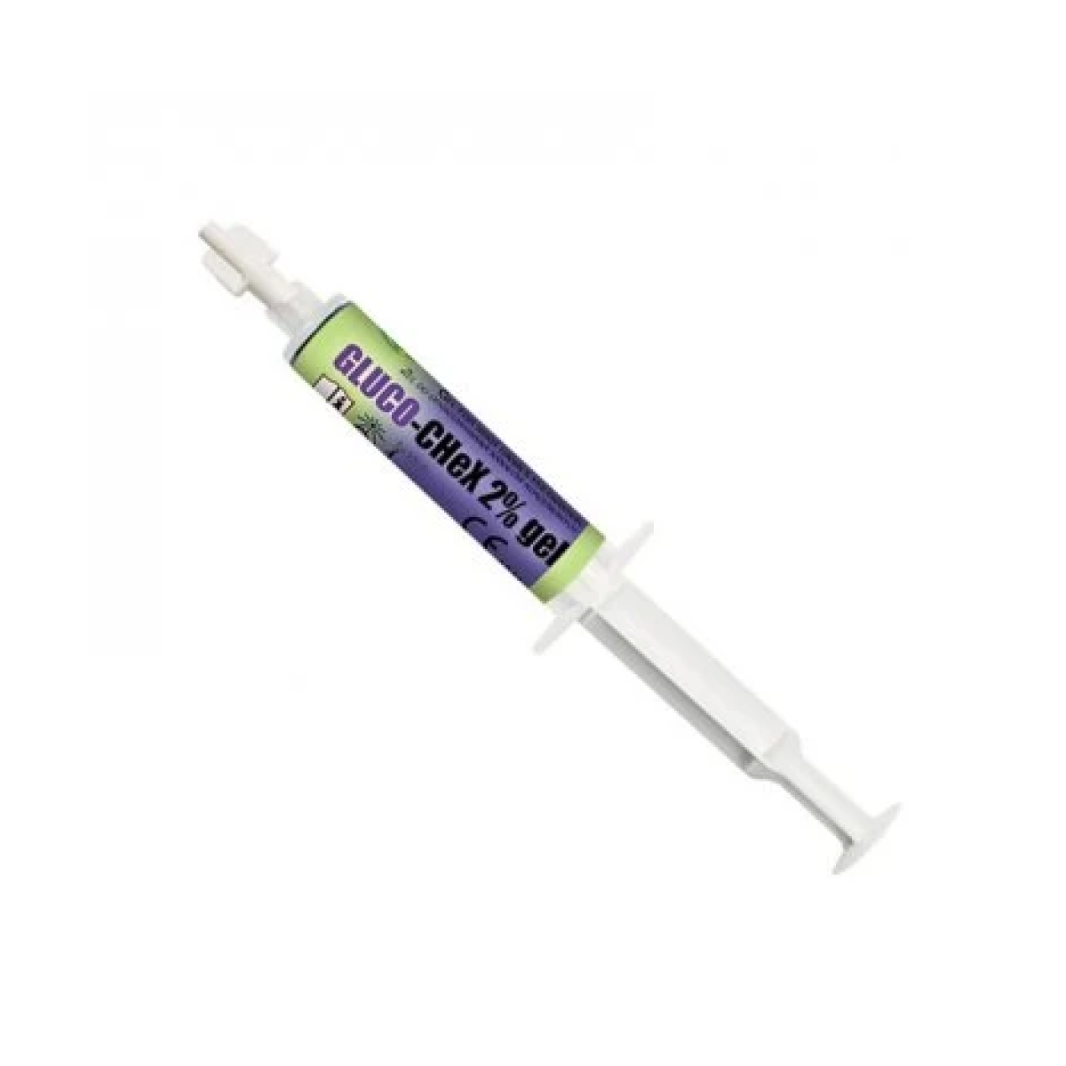 GLUCO CHEX 2% гель полегшує розширення та досягнення прохідності каналу. Гель має мастильні властивості, що полегшує розміщення інструменту в кореневому каналі і обробку каналу, а також значно зменшує ризик зламу інструменту в каналі.