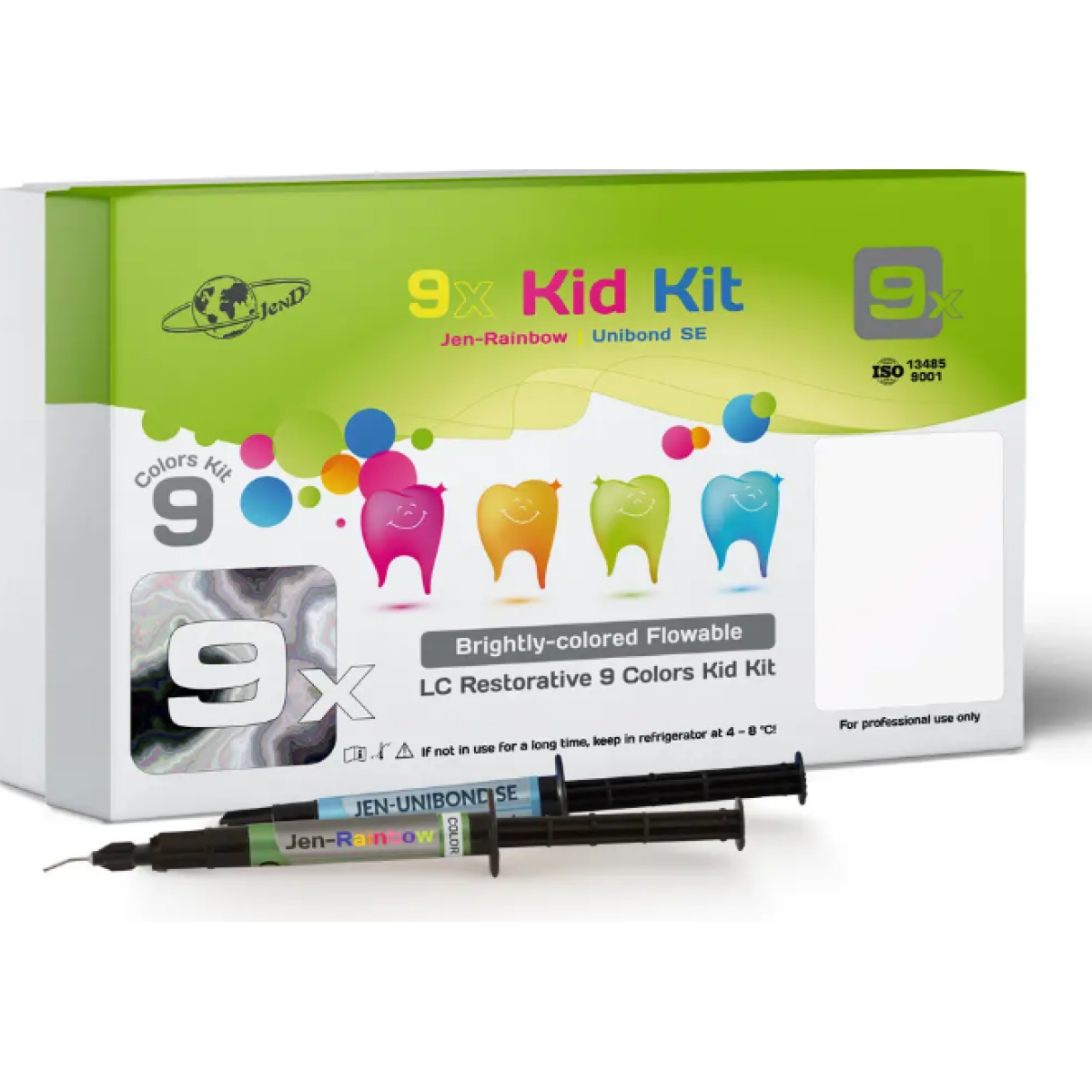 Новий, кольоровий, фотополімерний текучий реставраційний композит Jen-Rainbow з яскраво вираженим ефектом перлинного блиску або флуоресценції для пломбування, переважно молочних зубів. Підходить для відновлення ерозійних, пошкоджених, знебарвлених і структурно-дефіцитних тканин зуба.