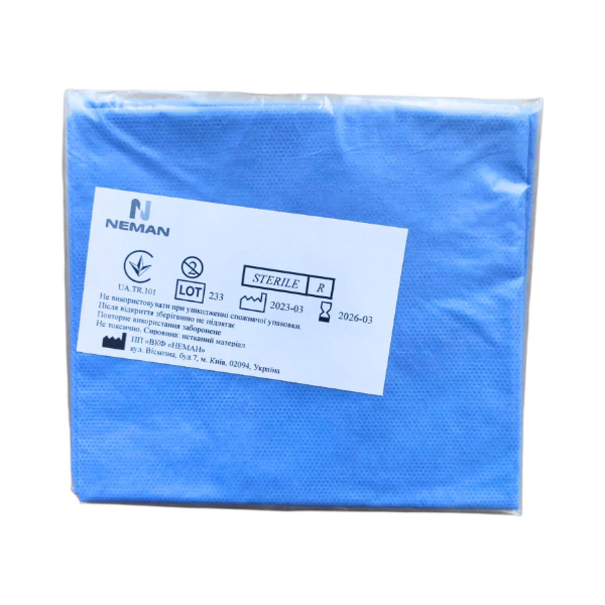 Матеріал виготовлений зі спанбонду – високотехнологічного нетканого поліпропіленового матеріалу, що забезпечує паропроникність, міцність, хімічну стійкість та антибактеріальний захист.
